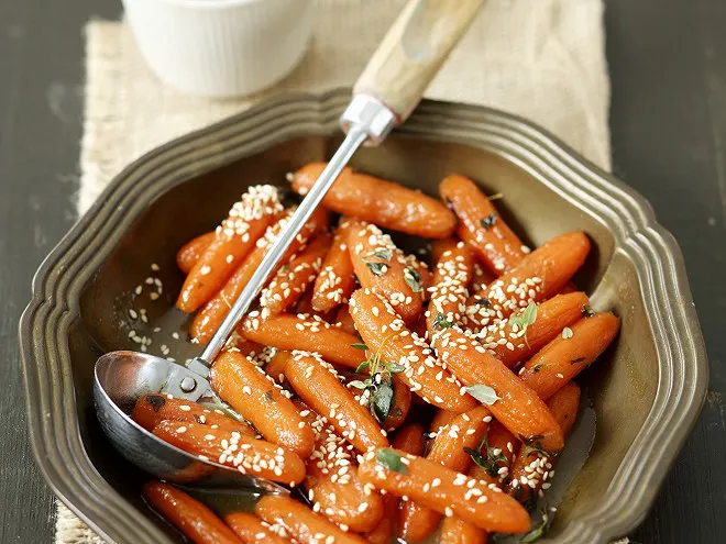 Ingrédients pour votre Carotte confite et nougatine aux graines de lin
