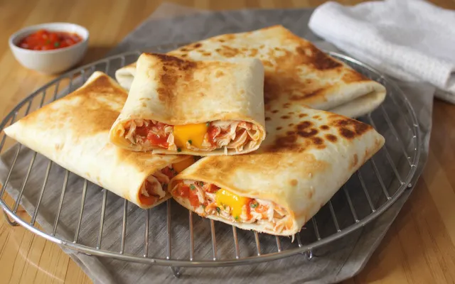 - Service : Servez immédiatement pour profiter du contraste entre le poulet chaud et les garnitures fraîches. Vous pouvez couper chaque wrap en deux en diagonale pour une présentation élégante.