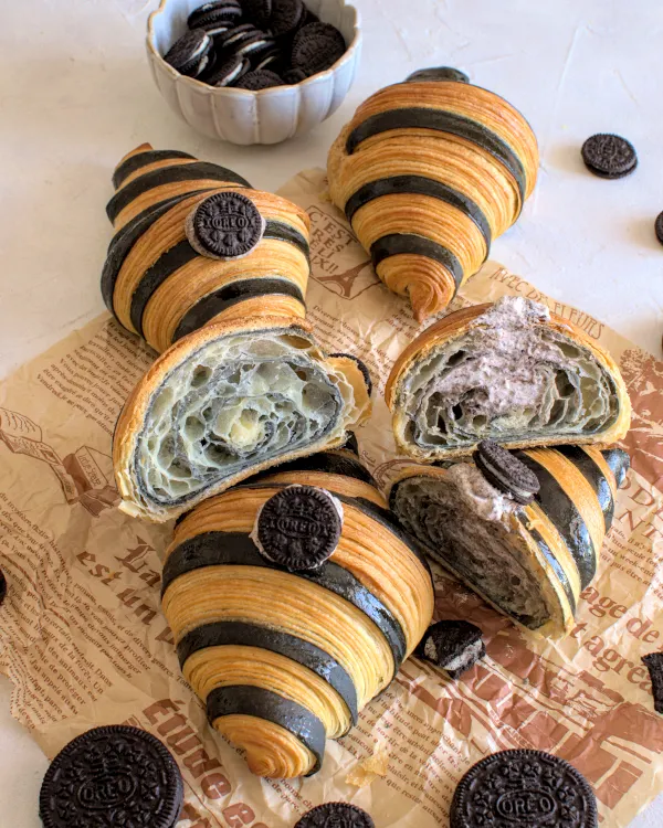 Cette couleur intrigante vient du charbon végétal en poudre, ajouté à la pâte pour un effet visuel unique sans altérer le goût. L’idée m’est venue en voyant des sandwichs au saumon fumé dans ces croissants si photogéniques – j’ai toujours voulu les reproduire !